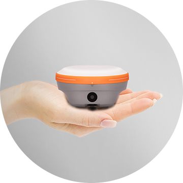 i76 パームビジュアルRTKは,GNSS技術,慣性測定装置 (IMU) とダブルカメラを統合したコンパクトで軽量な受信機です.重さ450グラムで,IP68の評価を付与する持ち運びも耐久性も高い